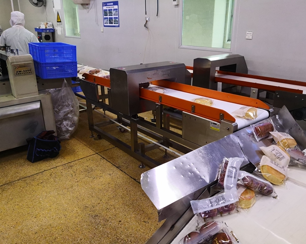 這里有兩臺(tái)食品金屬探測(cè)機(jī)并列排列,并非是用了2臺(tái)金屬檢測(cè)機(jī)進(jìn)行并行生產(chǎn)。而是右邊的食品金屬檢測(cè)機(jī),是之前采購(gòu)的不合格的產(chǎn)品。現(xiàn)在被冷落在一邊,準(zhǔn)備讓那家供應(yīng)商自行運(yùn)回去。左邊這臺(tái)機(jī)器是連之新生產(chǎn)的食品金屬檢測(cè)機(jī)。